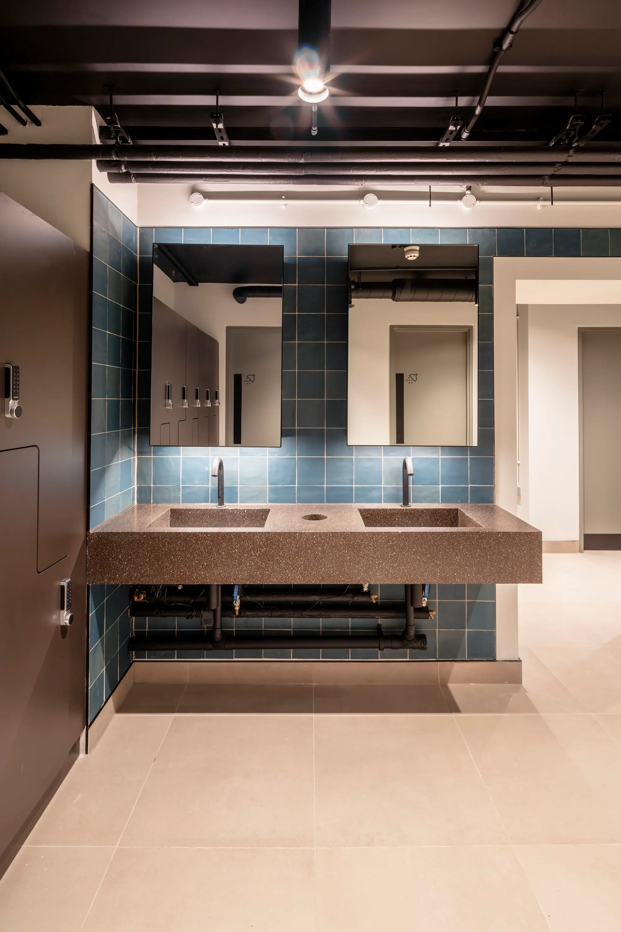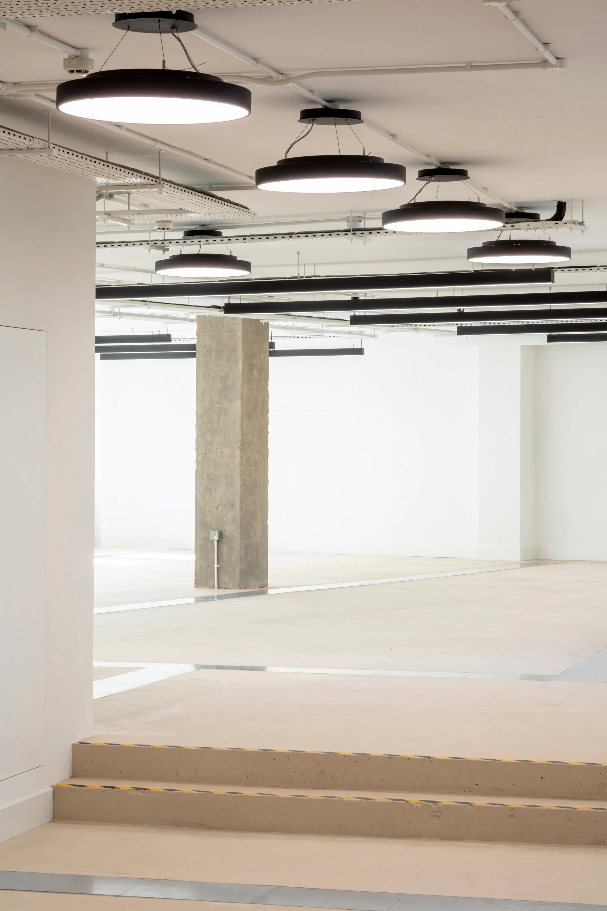 Floorplates are dominated by exposed services and feature pendant lights. Original structural elements are expressed throughout the buidling enhancing the industrial language of the upper floors.